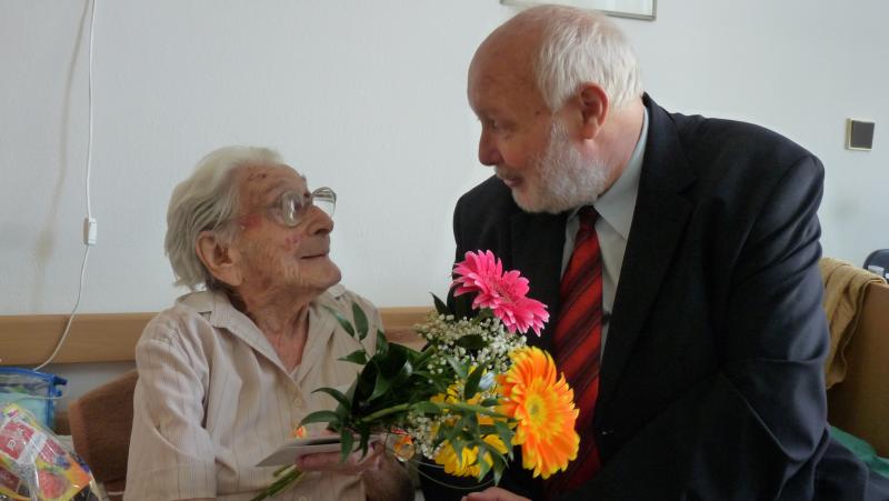 K narozeninám přišel oslavenkyni popřát pan starosta PhDr. Jiří Čejka, pan ředitel Ing. Rudolf Nytl.