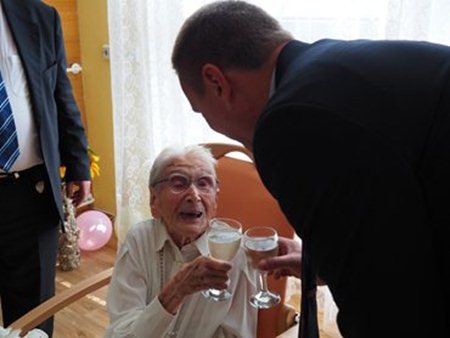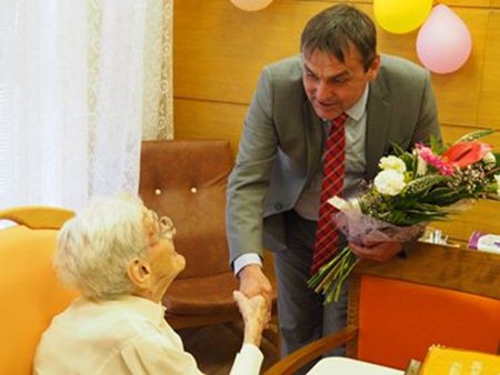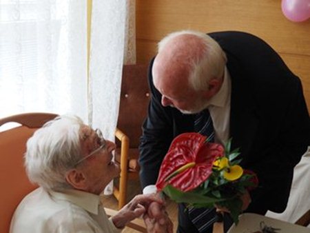 K narozeninám nejstarší obyvatelce České republiky přišel blahopřát primátor města Brna pan Ing. Petr Vokřál, pan starosta PhDr. Jiří Čejka, ředitel domova pro seniory pan Ing. Rudolf Nytl, zástupce MMB PaedDr. Polák a připojili se také zaměstnanci domova.