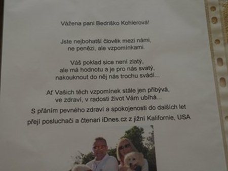 Dne 1. 7. tohoto roku oslavila již 108 let klientka našeho Domova pro seniory v Brně na ulici Věstonická, paní Bedřiška Köhlerová. V domově slaví narozeniny již po čtrnácté. Narodila se v italském Meranu a v roce 1919 se přestěhovala s rodiči do Brna, kde prožila celý svůj život. Velmi ráda s manželem cestovala a o svém životě dokáže velmi poutavě vyprávět. Paní Köhlerová ráda poslouchá rozhlas, navštěvuje rozlehlou zahradu, zajímá se o dění ve světě i doma, ráda si popovídá o tom, co slyšela v rozhlase a počastuje zaměstnance svými milými humornými poznámkami. Jsme rádi, že se zapojuje do dění v domově jako například svou účastí na sportovních hrách nebo hodové zábavě.