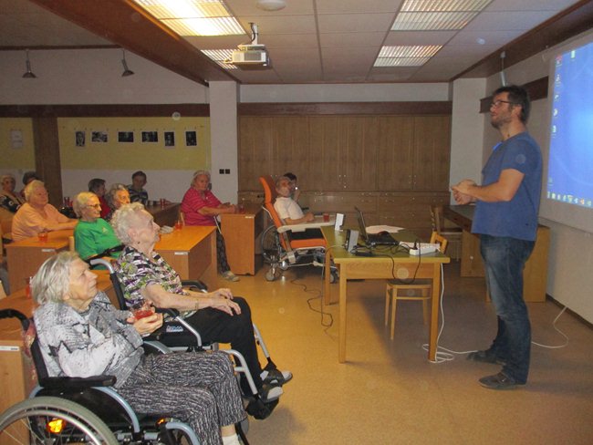 "Podzim pro seniory" je název maturitního projektu Michaely Woffové. Dnes jsem si vyslechli umělecký přednes pana Jaroslava Brendla...