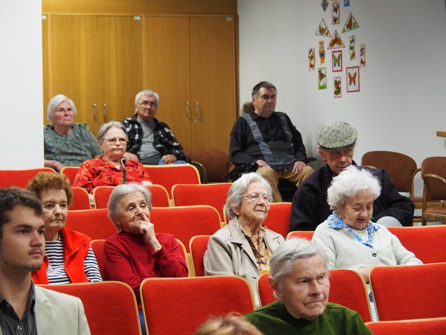 "Podzim pro seniory" je název maturitního projektu Michaely Woffové. Dnes jsem si vyslechli umělecký přednes pana Jaroslava Brendla. Zazněly balady Villona, Erbena (Vrba, Vodník), Nerudy, Vrchlického (Balada blanická), Wolkera (O nenarozeném dítěti) a Horáčka (Vltava je studená).