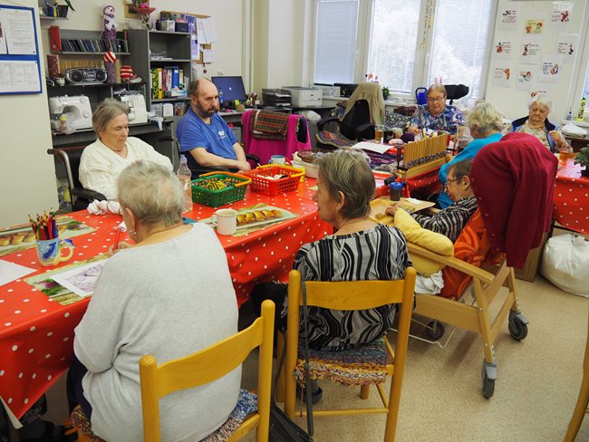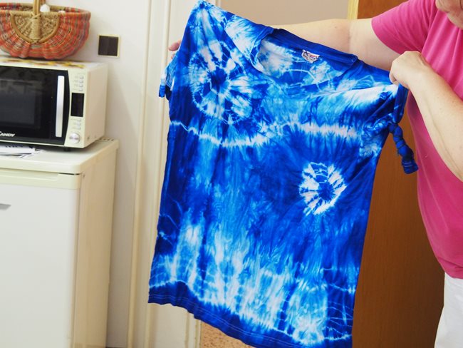 V aktivizační dílně jsme batikovali trička v různých barvách.