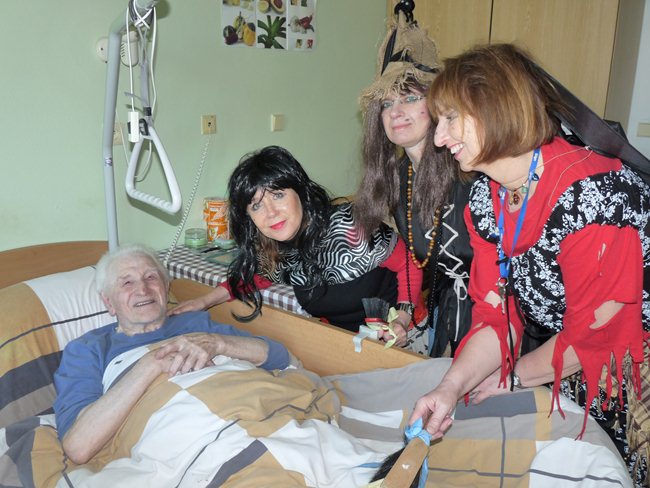 Čarodějné ženy a čaroděj vymetli všechny rohy místností a nevynechali ani pokoj nejstarší obyvatelky ČR, paní Bedřišky Köhlerové (108 let).
