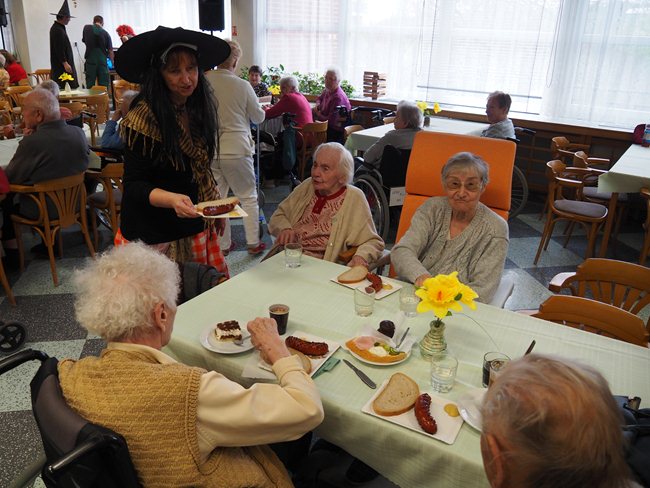 Pro nepřízeň počasí byl přelet čarodějnic a zahájení grilovací sezóny ve velké jídelně DS. Čarodějnice rozdávaly buřty a seznámily nás s informacemi o Filipojakubské noci - kde vznikl zvyk pálení čarodějnic, jak se ve kterém kraji jmenuje, co se během této oslavy děje, které nářadí je pro bezpečný přelet potřebné atd.