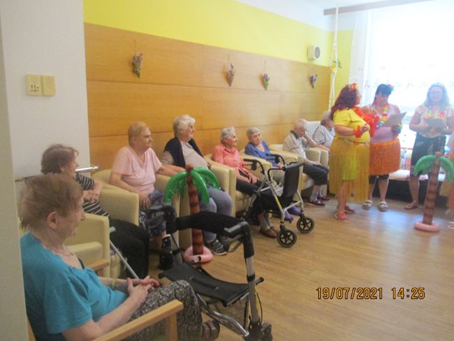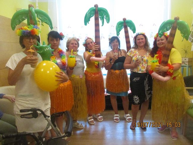 V aktivizačních klubech "cestujeme". Skupinka klientů z oddělení C1 "jela" na Havaj. Prohlédli si pláže s palmami, zazpívali si a zatančili s domorodými tanečnicemi.