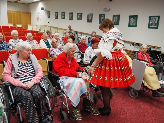 Jiná skupinka klientů "navštívila" Slovácký rok, kde si prohlédla kyjovský kroj, jeho oblékání, ochutnala burčák a podívala se na film.