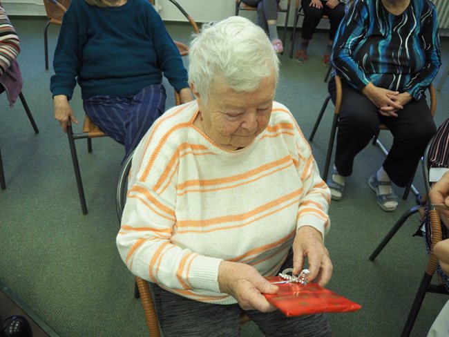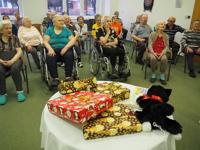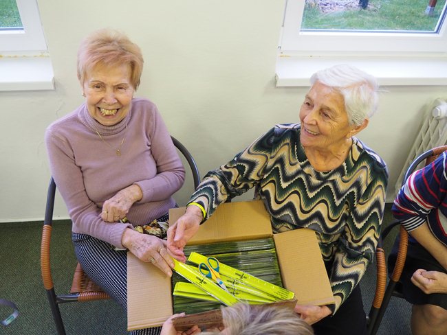 Dárky pro klienty nám věnovala paní Vladimíra Černá a její kolegyně z Areálu dopravní výchovy a vzdělávání. Terapeutické pomůcky a společenské hry klienty potěšily. Reflexní proužky a přívěsky přispějí k bezpečnosti klientů na jejich vycházkách.