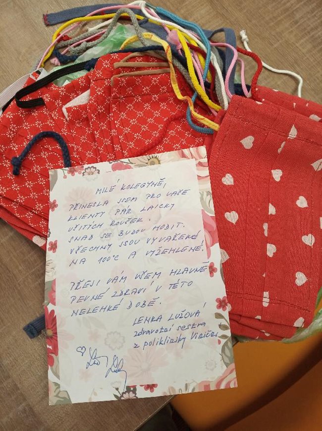 - paní Lenka Lužová, poliklinika Viniční - roušky a krásný povzbuzující dopis