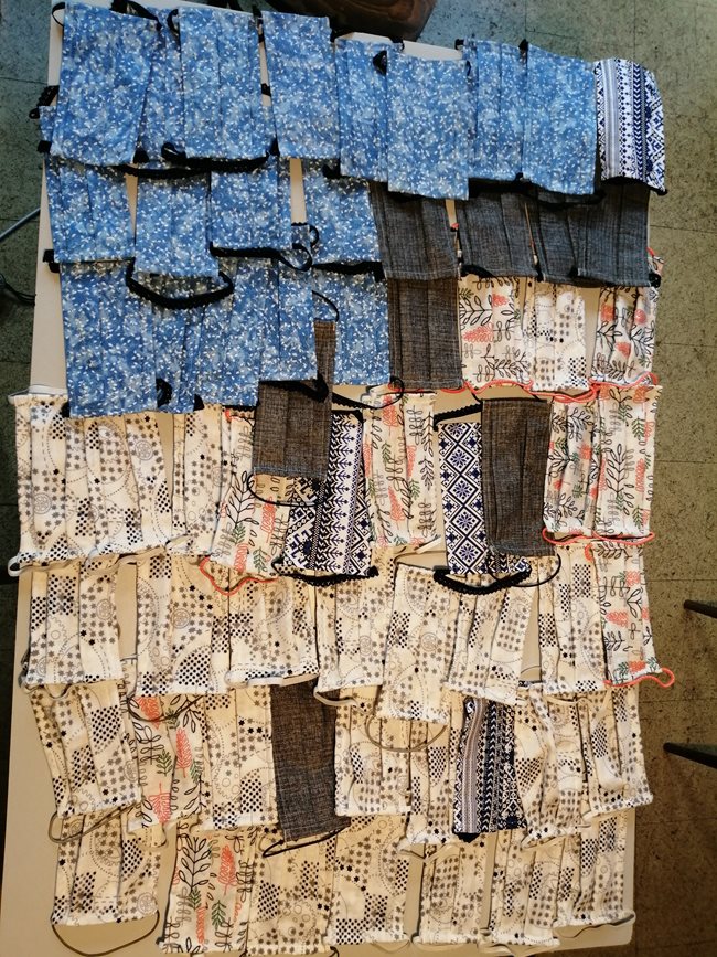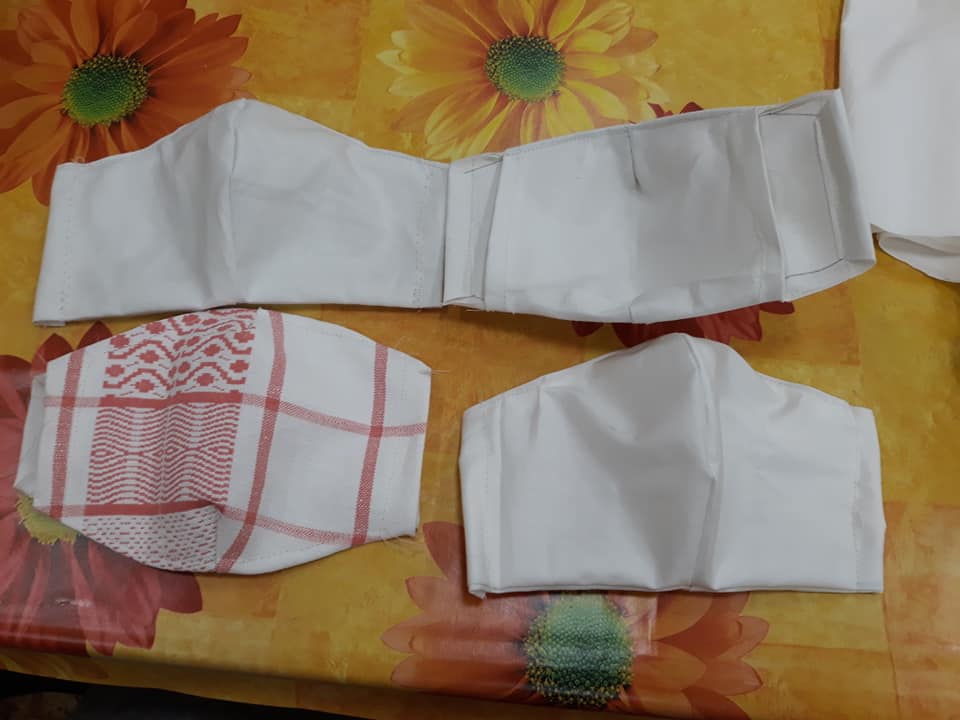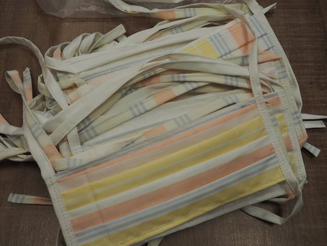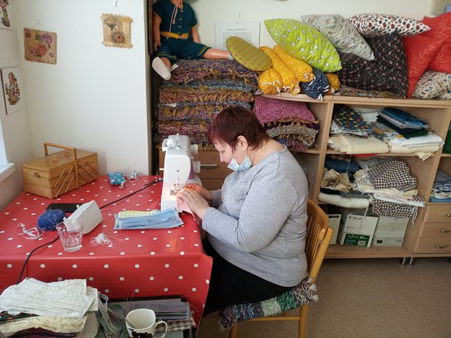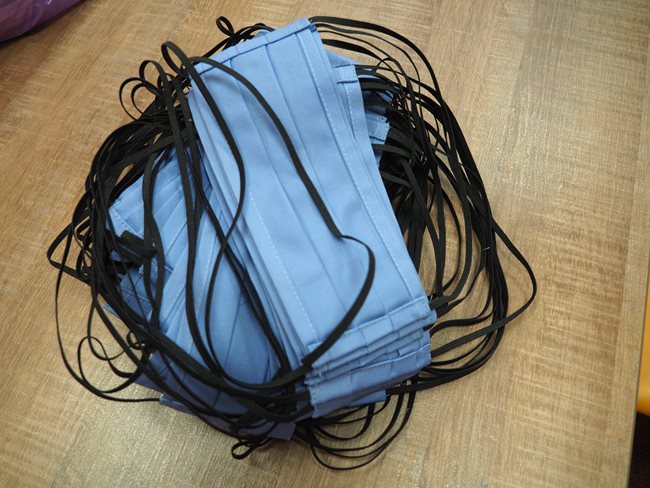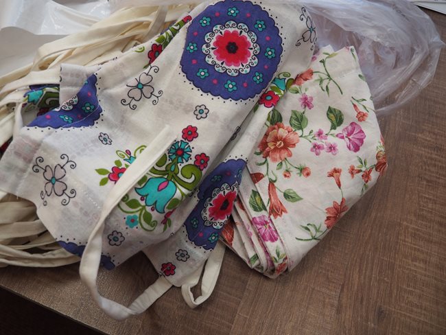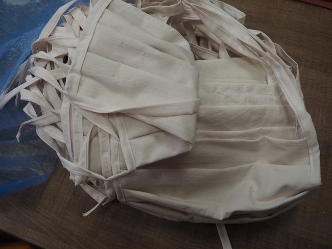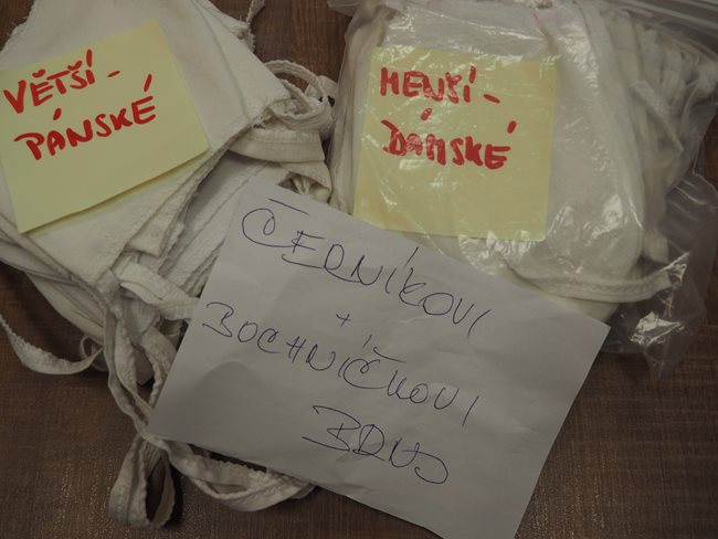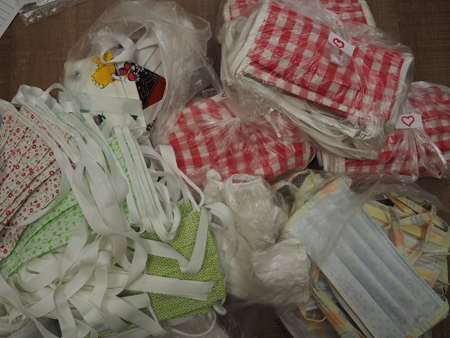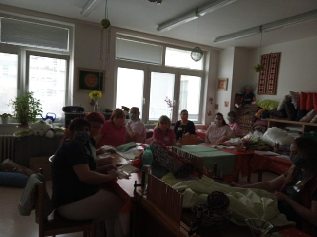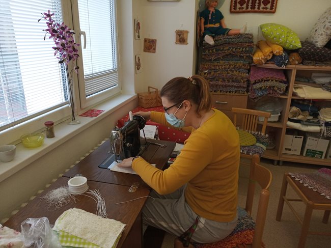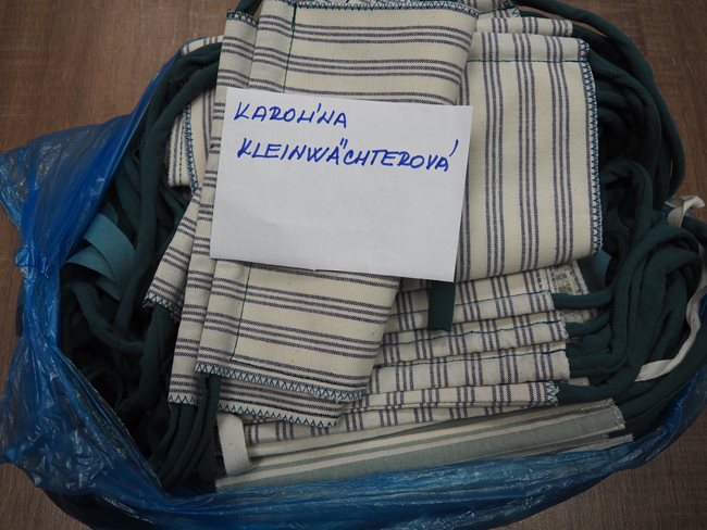 V jarních měsících první koronavirové vlny šijeme roušky pro naše zaměstnance a klienty. Děkujeme všem zaměstnancům, kteří se na šití podílí (vykonají své povinnosti a spěchají do dílny pomáhat šít, přicházejí ze svého volna nebo šijí po odpracovaných směnách doma). Musíme mít roušky pro 404 klientů a přibližně 250 zaměstnanců.