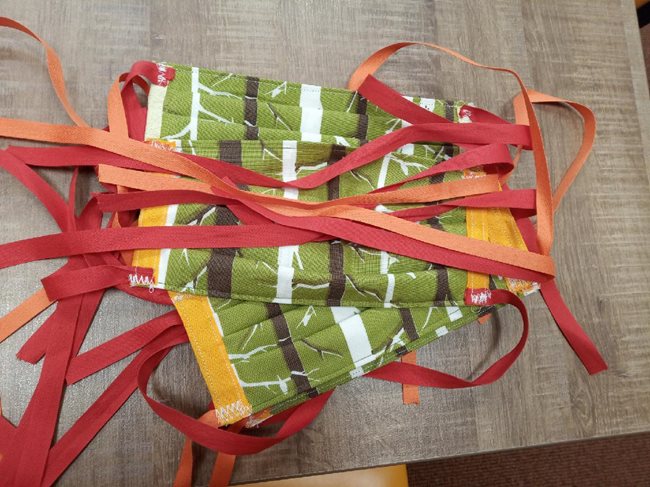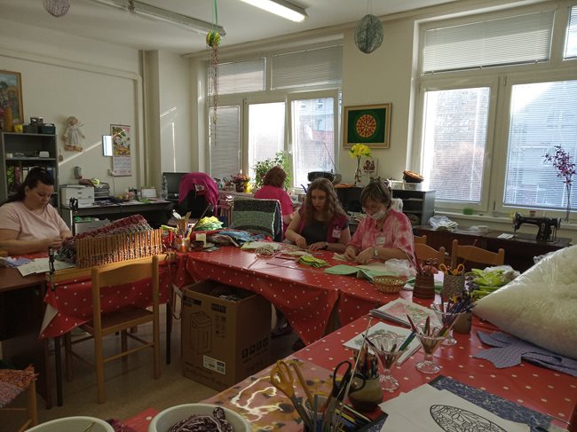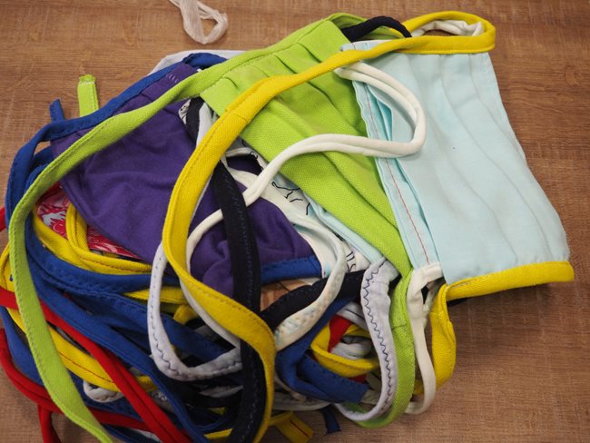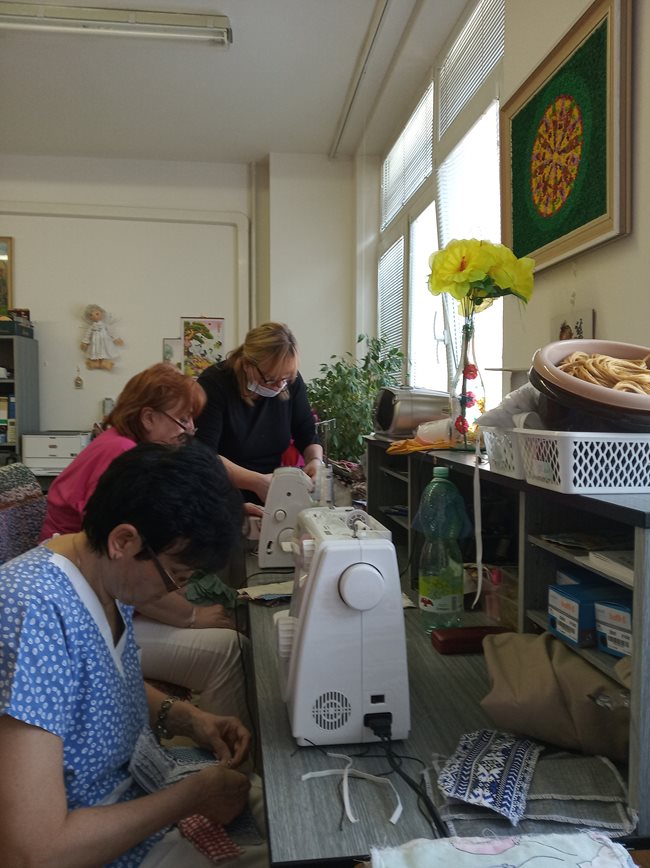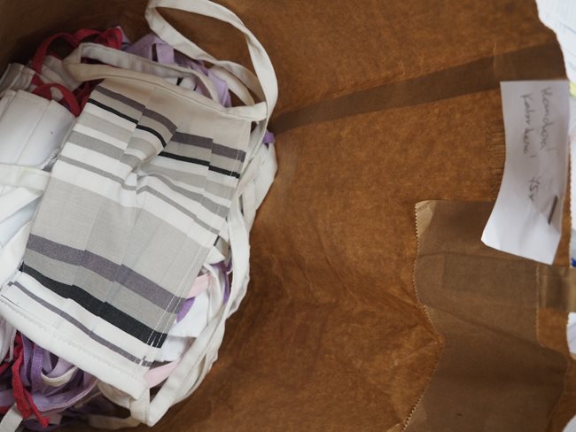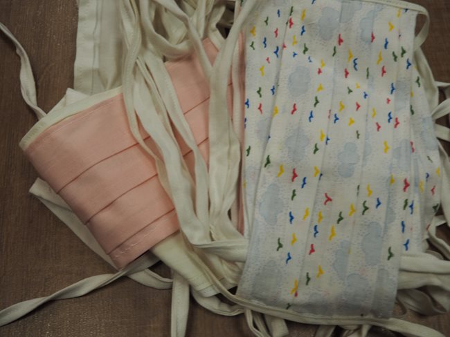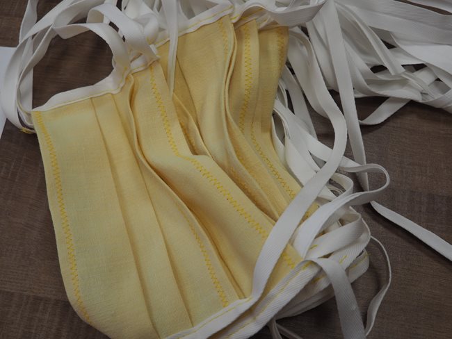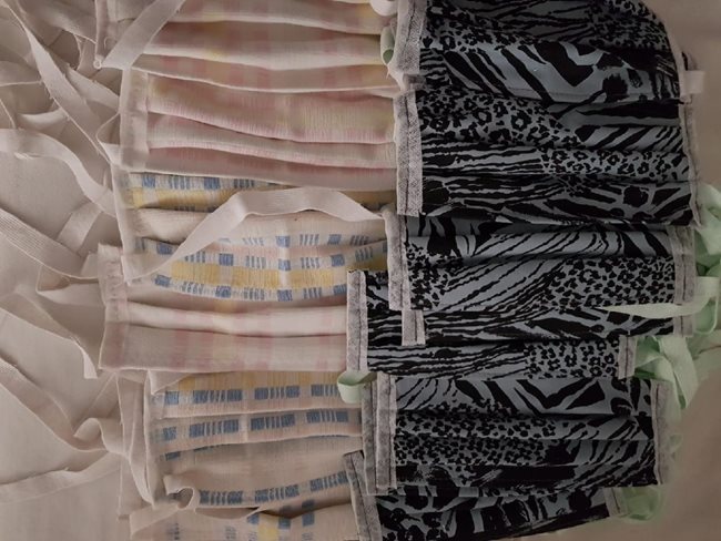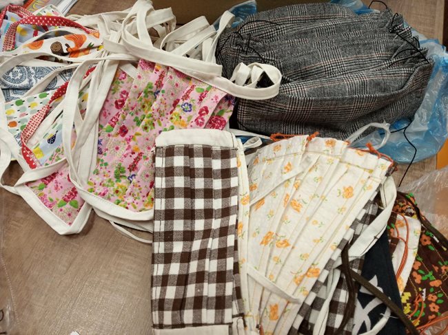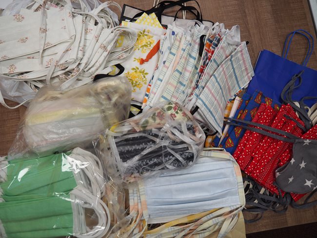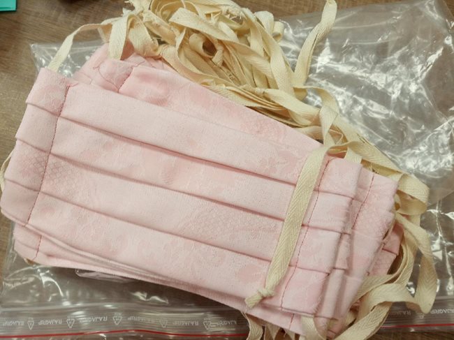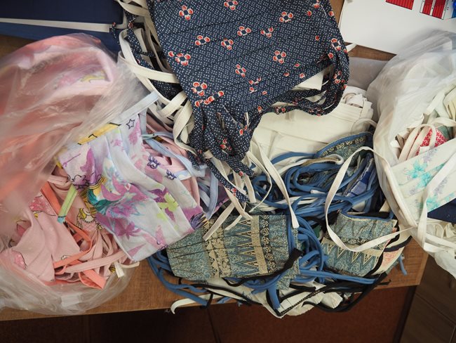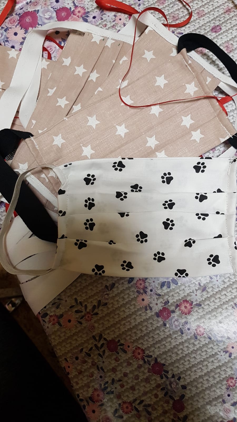 V jarních měsících první koronavirové vlny šijeme roušky pro naše zaměstnance a klienty. Děkujeme všem zaměstnancům, kteří se na šití podílí (vykonají své povinnosti a spěchají do dílny pomáhat šít, přicházejí ze svého volna nebo šijí po odpracovaných směnách doma). Musíme mít roušky pro 404 klientů a přibližně 250 zaměstnanců.