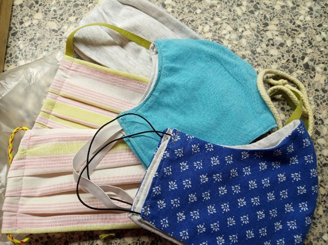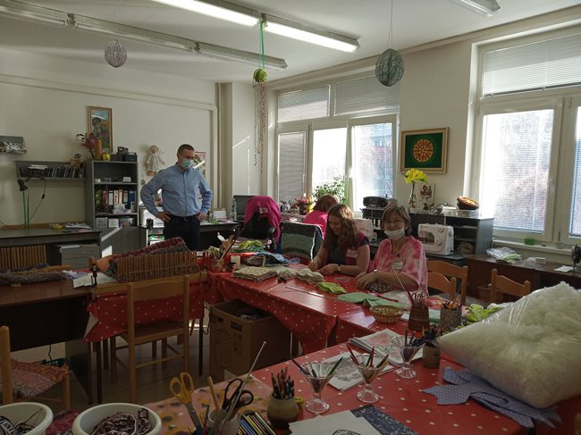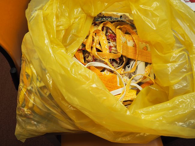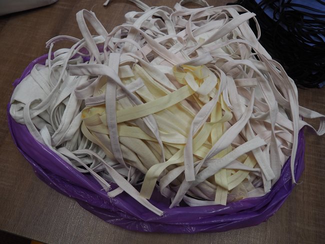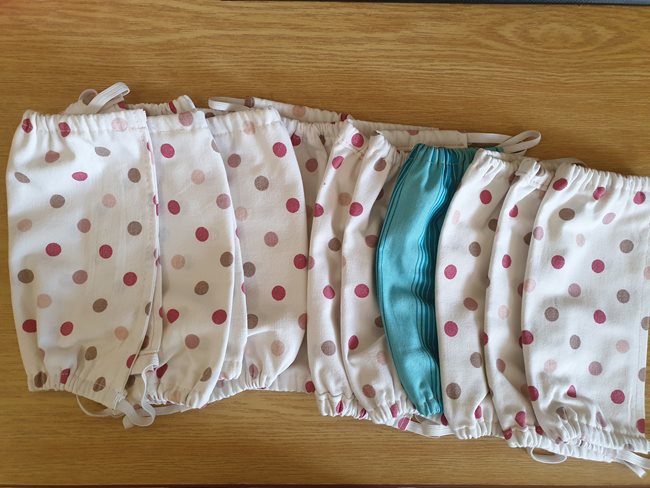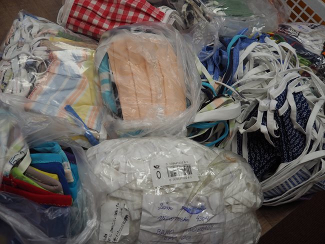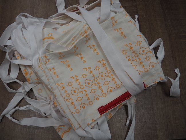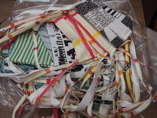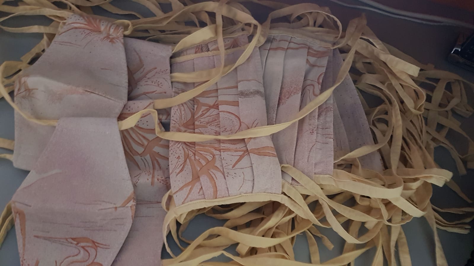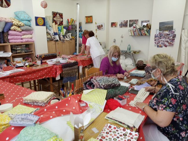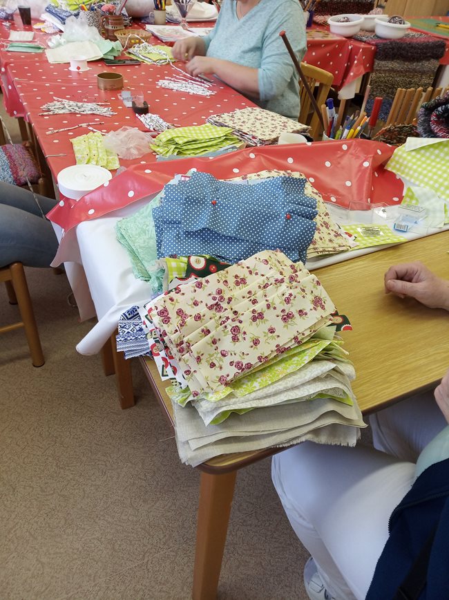 V jarních měsících první koronavirové vlny šijeme roušky pro naše zaměstnance a klienty. Děkujeme všem zaměstnancům, kteří se na šití podílí (vykonají své povinnosti a spěchají do dílny pomáhat šít, přicházejí ze svého volna nebo šijí po odpracovaných směnách doma). Musíme mít roušky pro 404 klientů a přibližně 250 zaměstnanců.
