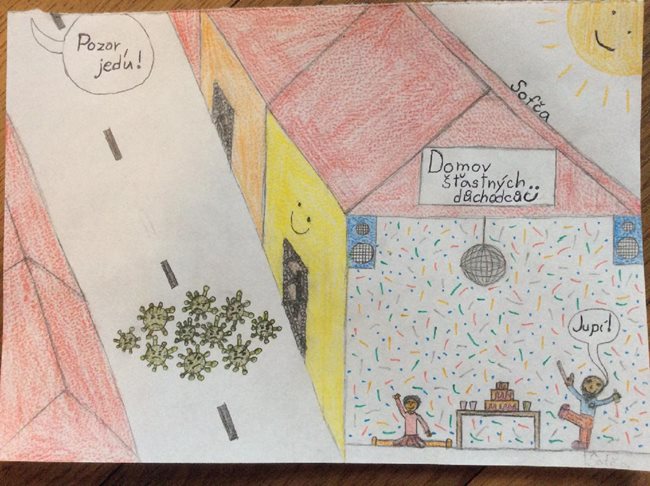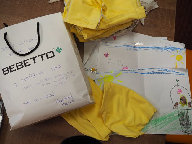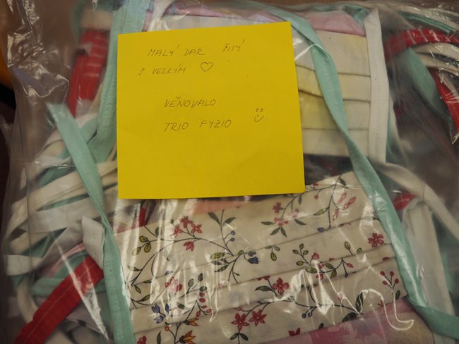 - paní Kubíčková, paní Masaříková a 5letá Anička - roušky a obrázky pro povzbuzení mysli
