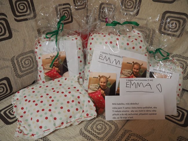 - Emma, která nám poslala pro klienty ručně šité polštářky i s dopisem.