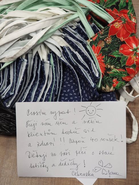 Každá rouška, nebo materiál (hlavně gumky, tkalouny, šikmé proužky, "keprovky", využijeme i čisté pružné materiály jako jsou elastická trička) jsou u nás využity k ochraně klientů a zaměstnanců a vítali jsme je s radostí. Děkujeme Vám a vážíme si Vaší práce a pomoci.