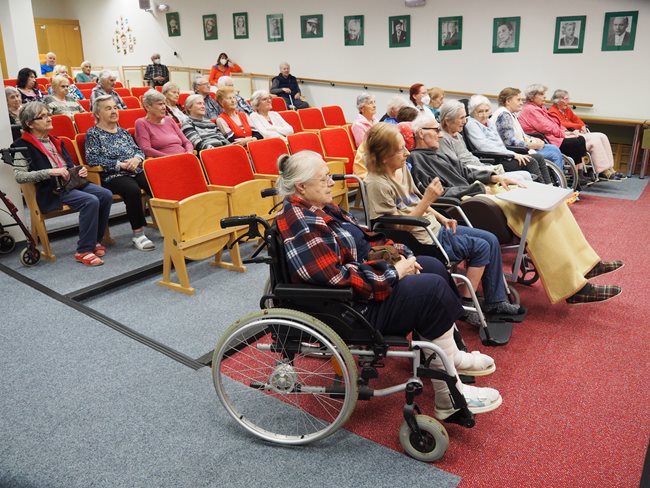 "Podzim pro seniory" je název maturitního projektu Michaely Woffové. Dnes jsem si vyslechli umělecký přednes pana Jaroslava Brendla...