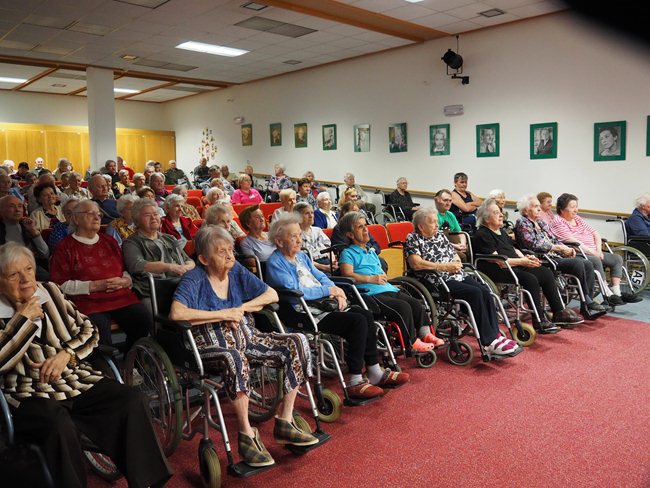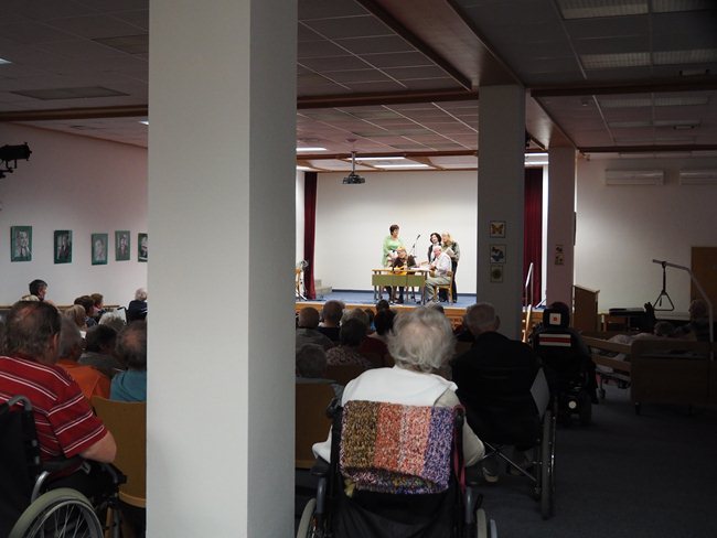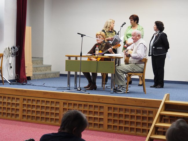 "Podzim pro seniory" je název maturitního projektu Michaely Woffové. Dnes jsem si vyslechli umělecký přednes pana Jaroslava Brendla...