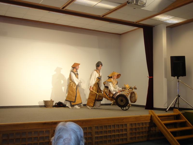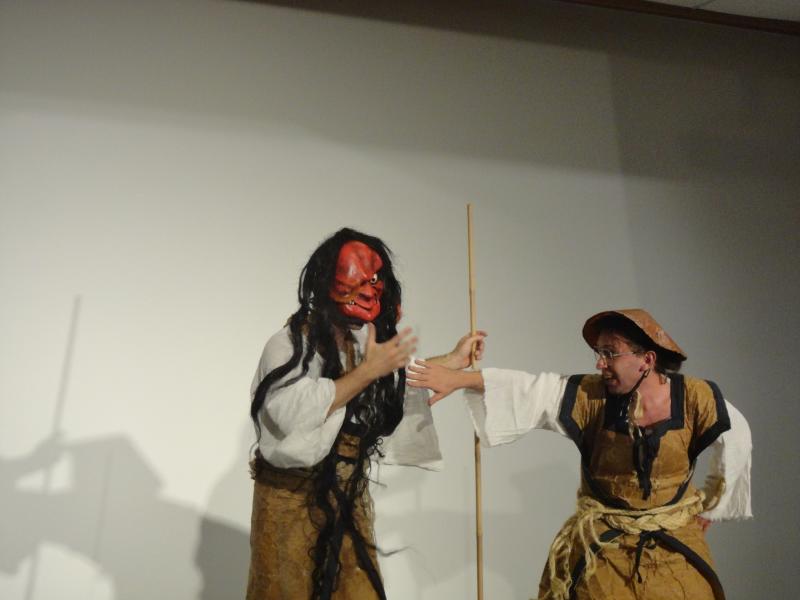Hra vychází ze starého japonského kaidanu o mocném strašidle. Původní hrůzostrašný a mystický příběh inscenace posunuje do humorné roviny. Jevištní zpracování je inspirováno principy japonské tradiční frašky kjógen, ve které přesná stylizace určuje pohybovou i vizuální podobu hry.