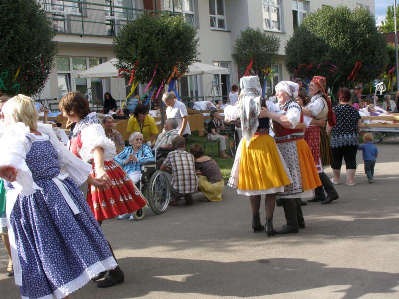 V našem domově se uskutečnily IX. tradiční hody, které jsou příležitostí k příjemnému setkání mezi uživateli služeb, jejich příbuznými, přáteli a zaměstnanci. Počasí bylo slunečné, muzika (Brněnka) nám krásně hrála, občerstvení a víno bylo výborné.