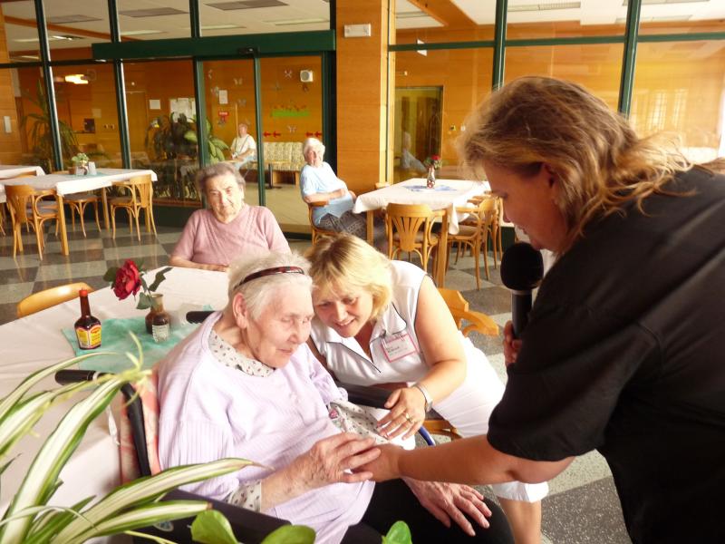 Dne 14. 7. 2014 oslavila paní Miklíková významné životní jubileum - sto let. K narozeninám jí přišel popřát pan ředitel Ing. R. Nytl, starosta ÚMČ...