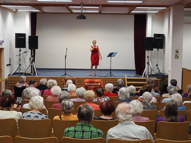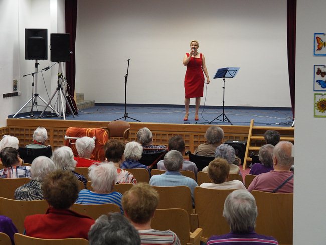 Paní Jana Slavíková, alias Blondie Jane, už více než 15 let baví lidi na oslavách, večírcích apod. svým zpěvem. Repertoár má sestaven z převzatých všeobecně známých písniček - hity od evergreenů až po modernu, od popu přes rock až po jazz, country a dechovku, a to převážně česky a anglicky. Nám zazpívala písničky Heleny Vondráčkové, Evy Pilarové a Marie Rottrové.