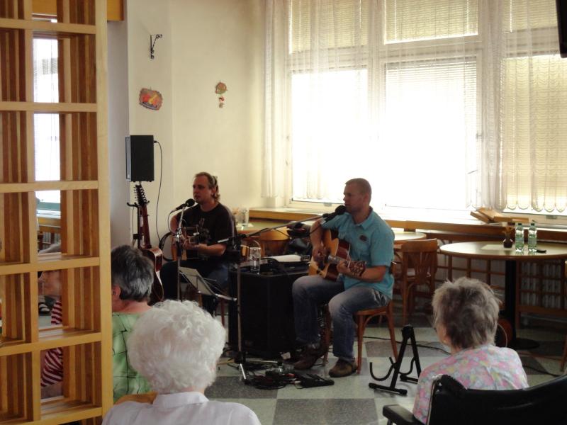 Odpoledne jsme si zpříjemnili poslechem známých písniček Honzy Nedvěda v podání Martina a Richarda ze Slovenska, které k nám doporučil Vašek z dua Eva a Vašek.
