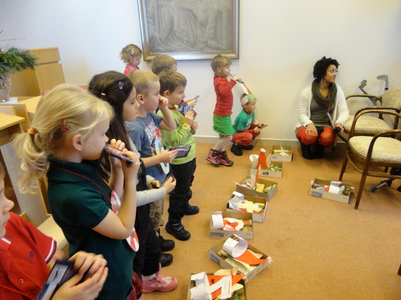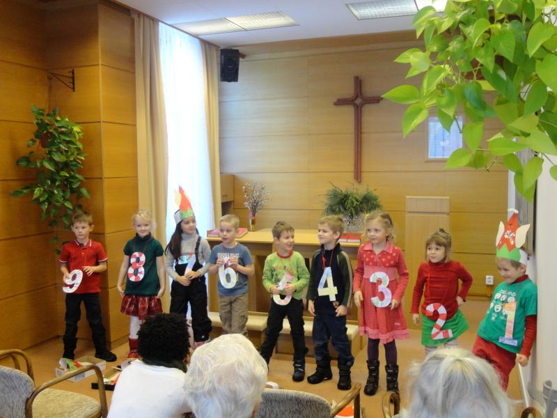 Anglicky hovořící děti z první třídy nám zazpívaly anglické a české vánoční písně a rozdaly malé vlastnoručně vyrobené dárečky.