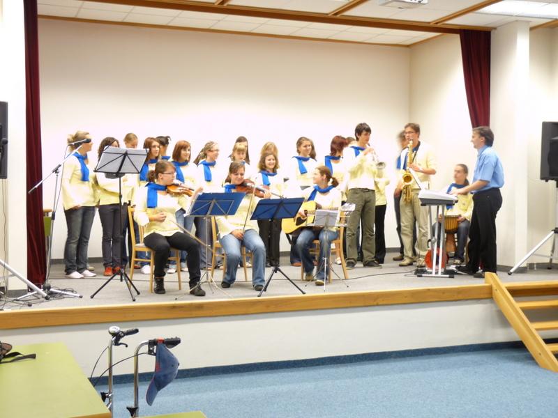 Pěvecký soubor Cantate - studenti z Cyrilometodějského gymnazia předvedli pásmo lidových písní, zazpívali si i společně s našimi klienty. Kinosál byl zaplněn do posledního místa.