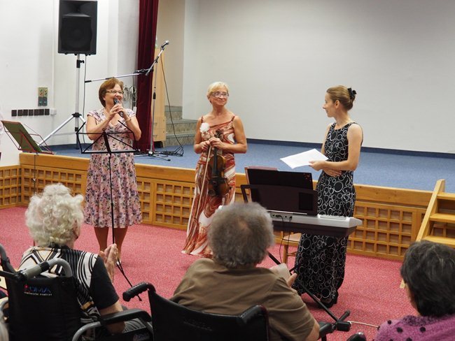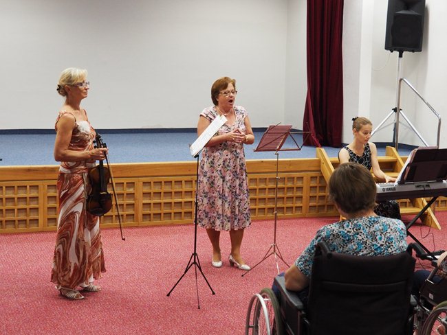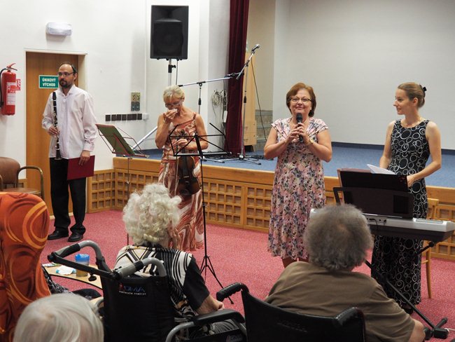 Zamračené odpoledne nám zpříjemnili členové Janáčkovy opery Národního divadla v Brně. V programu, který si pro nás připravili, zazněly skladby a písně F. Lehára, E. Humperdincka, E. Griega, C. Debussyho, V. Montiho, R. Bingeho, G. Bizeta a dalších skladatelů. Zpěvem nás potěšila 2. sopranistka Janáčkovy opery, paní Lenka Malinková za doprovodu houslí v podání paní Blanky Lau, klavírního doprovodu paní Jitky Houfové a klarinetu pana Jiřího Houfa.