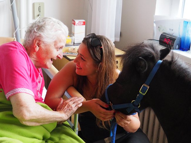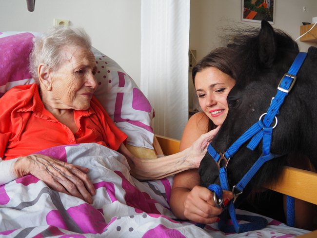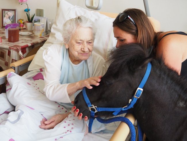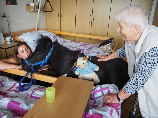 Naše klienty přišel potěšit koník Emil se svou chovatelkou Veronikou z Ivanovic. Koník je speciálně cvičen pro terapii se seniory. Přichází za nimi přímo na pokoj, klienti ho s radostí hladí, vnímají na ruce jeho teplý dech a mohou mu připínat do hřívy sponky. Návštěva koníka Emila se setkala s kladnou odezvou a Emil bude klienty navštěvovat i v budoucnu.
