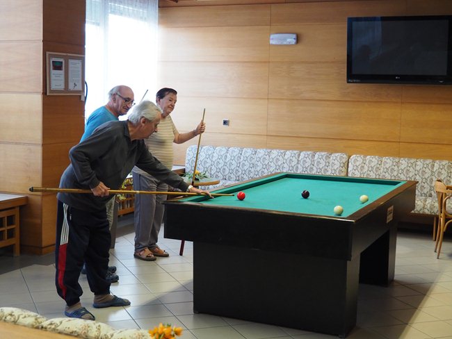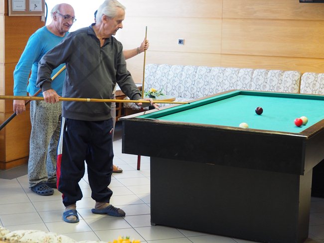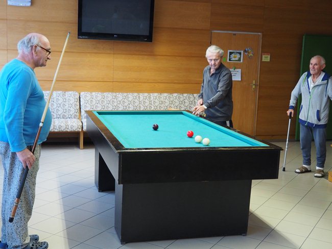 Kulečníkové odpoledne. Pánové učí hrát dámu.