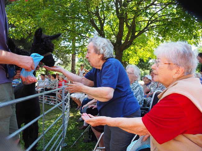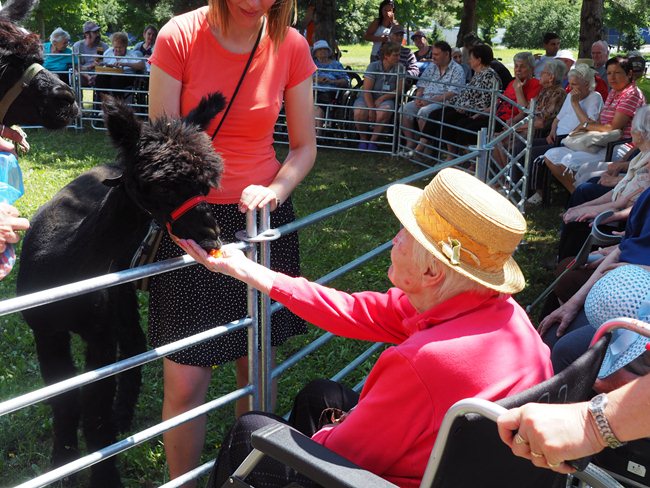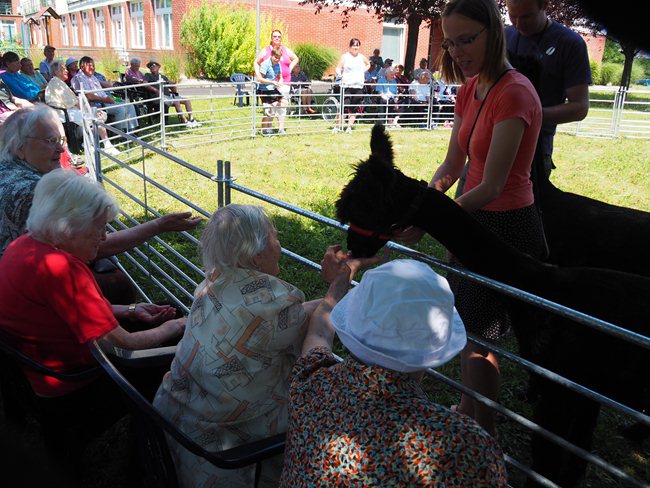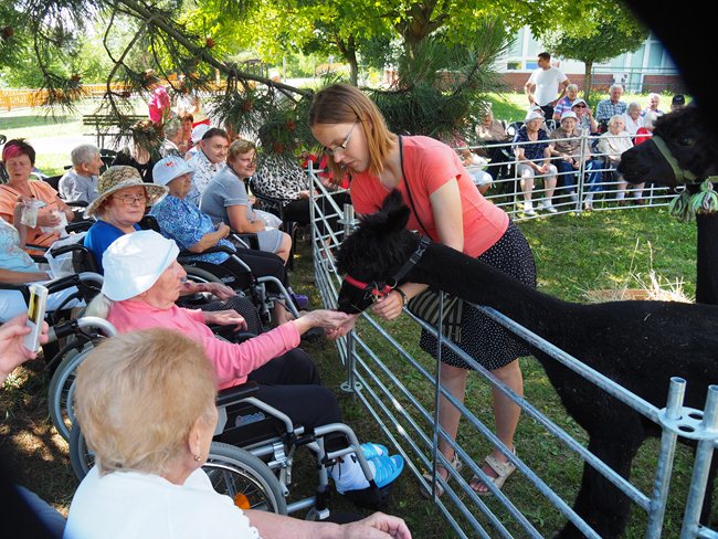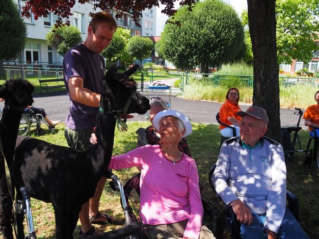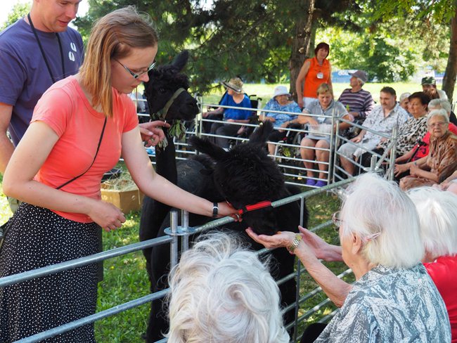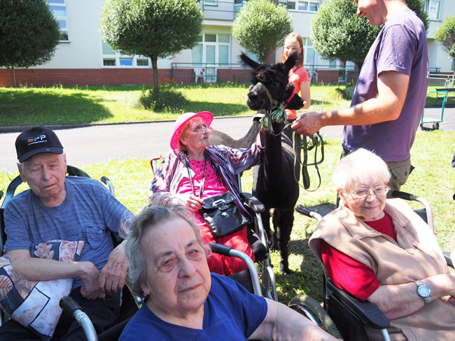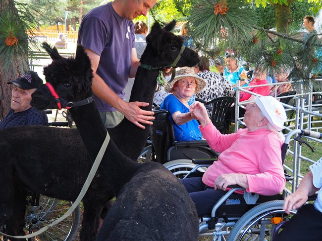 Na zahradě domova pro seniory jsme uvítali vzácnou návštěvu. Lamí sestry Sofinku a Máju z Lamacentra Hády. Jsou to dcery lamího samce Čerta. Před dvěma lety nás navštívil další z jeho potomků, sameček Toby. Dozvěděli jsme se informace o jejich životě a chovu, mohli si prohlédnout výrobky z jejich vlny a pohladit si je.