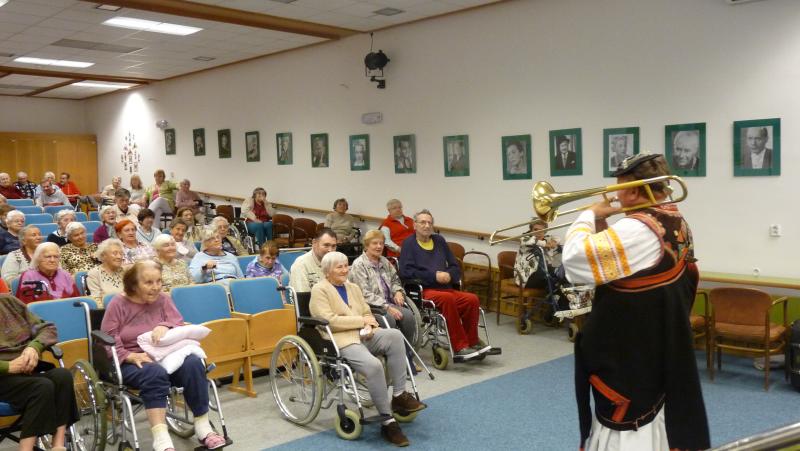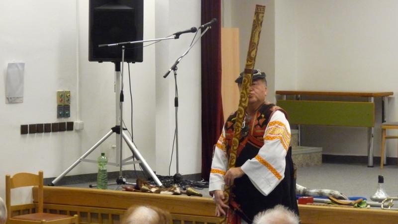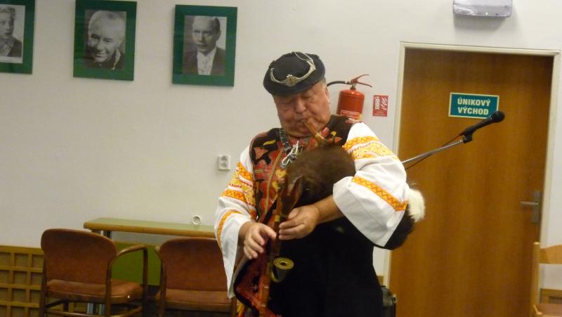 Lidové písně v podání pana Budínského z Očovej (Slovensko). Pan Budínský v lidovém kroji ze Slovenska zahrál na spoustu zajímavých tradičních hudebních nástrojů (harmonika, flétna, píšťaly, trubka, fujara, panova flétna aj.). Písně, které jsme znali, jsme si s ním zazpívali.