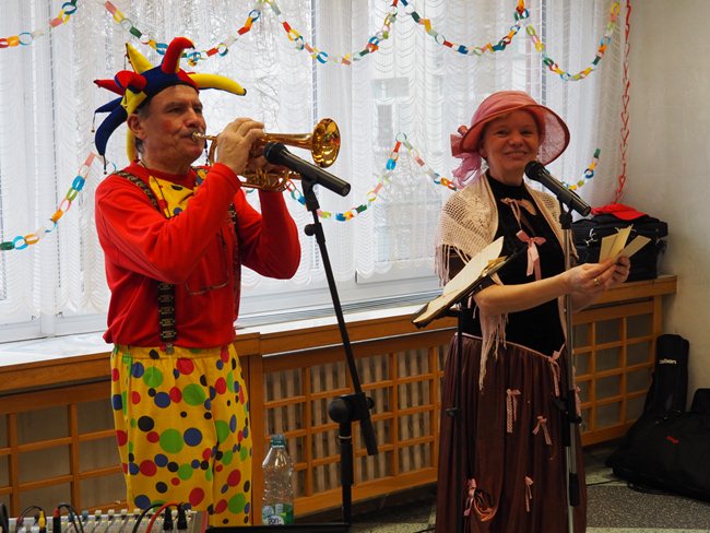 Maškarní bál byl plný tance, zpěvu a reje masek. Písně k poslechu a tanci nám zazpívali manželé Procházkovi.