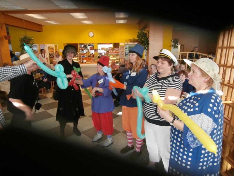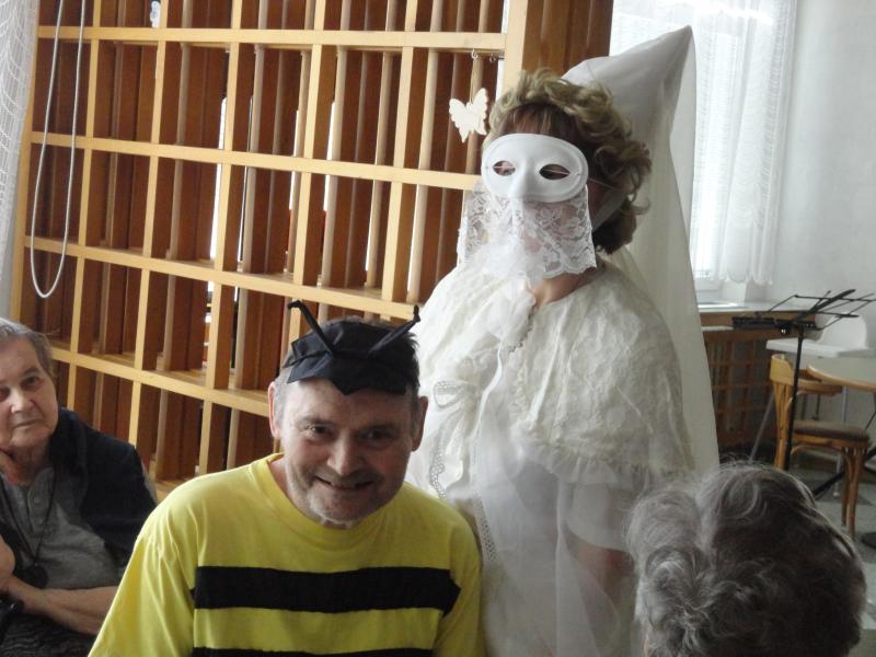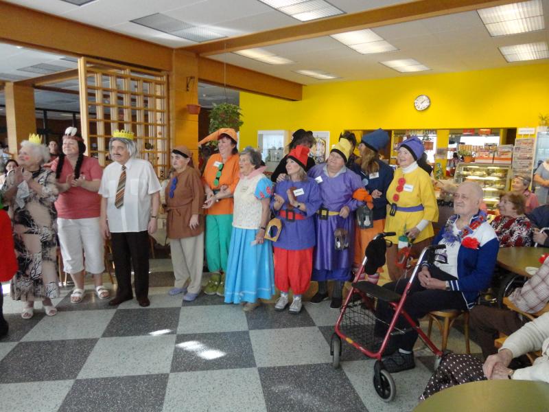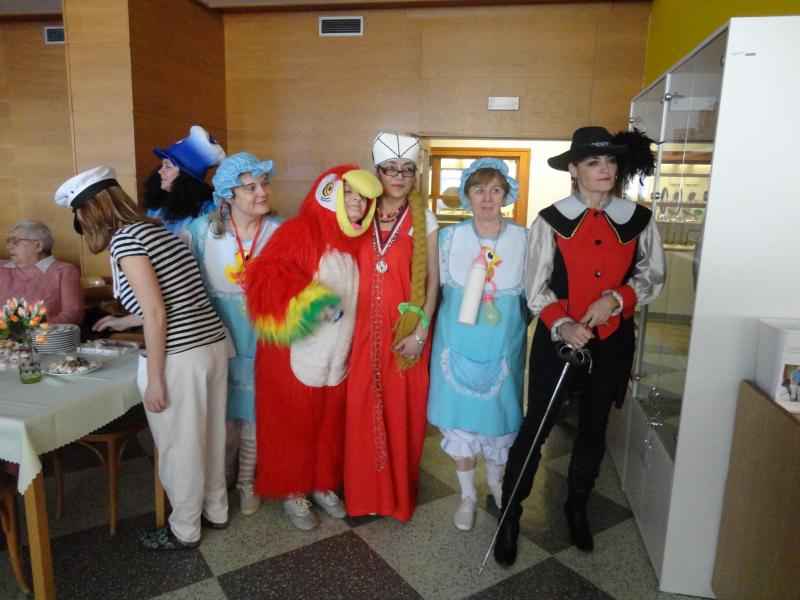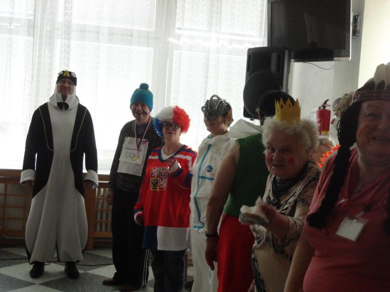 Maškarní ples zahájil pan ředitel v masce tučňáka. Celý areál domova se hemžil postavami pohádkovými (trpaslíky, králem a královnou, Sněhurkou, taťkou Šmoulou, Vilíkem, bílou paní, vodníkem, mušketýrem, ženskými postavy z Mrazíka, kovbojem), z říše zvířecí se nám předvedla vosa, papoušek, Růžový panter, myška. Zábavu nám připravila rozverná mimina, hokejisté, květinové děti, černá vdova, indiáni, námořníci, průvodčí z vlaku a také k nám zavítala výprava olympijská ve složení vedoucí výpravy, kulturní referent, politický pracovník, rychlobruslař, krasobruslařka, jezdec na sáních a skibobu a další sportovci a funkcionáři českého týmu. K poslechu i tanci celému osazenstvu maškarního mumraje hrál pan Šimon Pečenka.