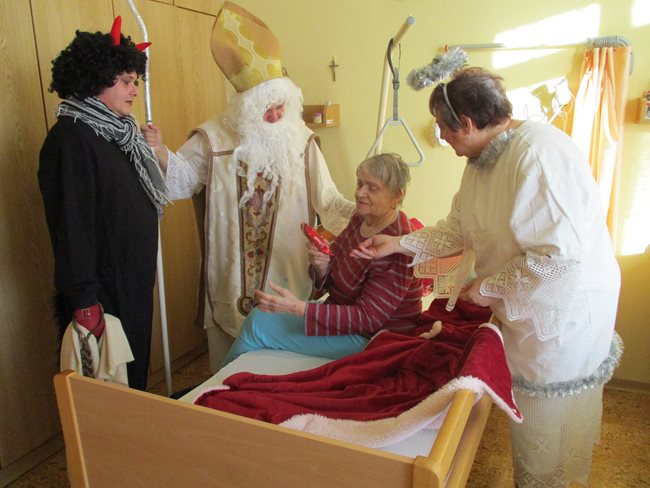 Svatý Mikuláš, nezbední čerti a hodní andělé navštívili naše klienty, předali jim sladké perníčky a ovoce.