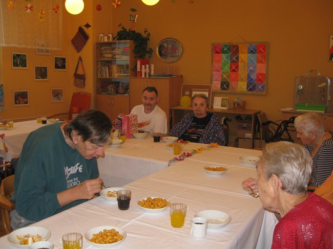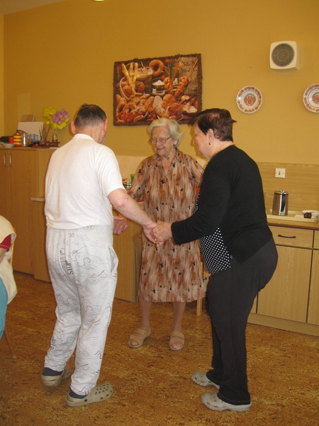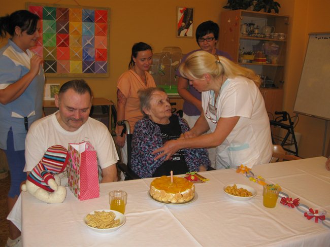 Klienti oddělení C5 oslavili narozeniny tancem. Součástí oslavy byla i ochutnávka ovocného dortu.