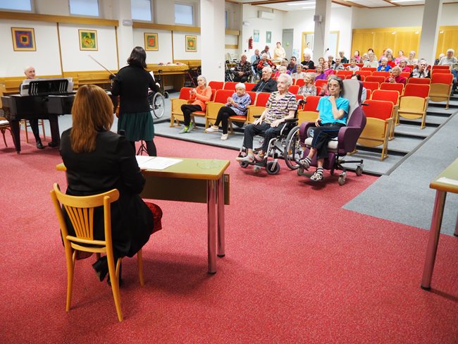 "Podzim pro seniory" je název maturitního projektu Michaely Woffové. Dnes jsem si vyslechli umělecký přednes pana Jaroslava Brendla...