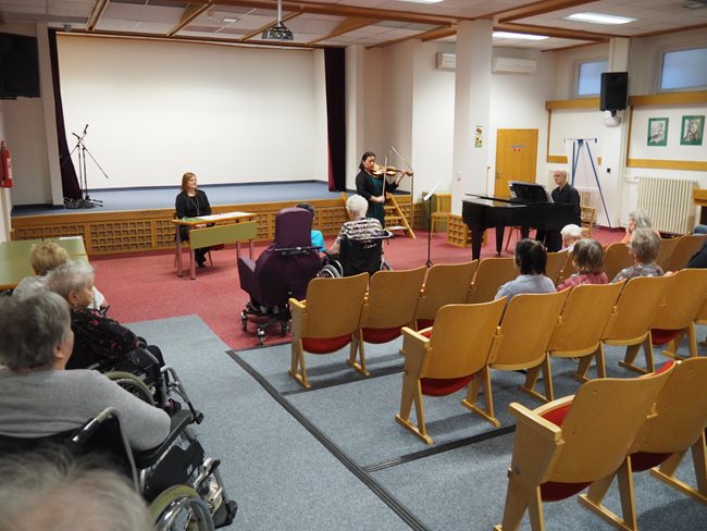 Odpoledne, které bylo věnováno hudbě a poezii, dostali klienti našeho domova jako dárek od Ježíškových vnoučat. Básně recitovala paní Kamila Špráchalová, na housle hrála paní Jitka Jiříčková a na klavír ji doprovázel pan Vítězslav Podrazil.