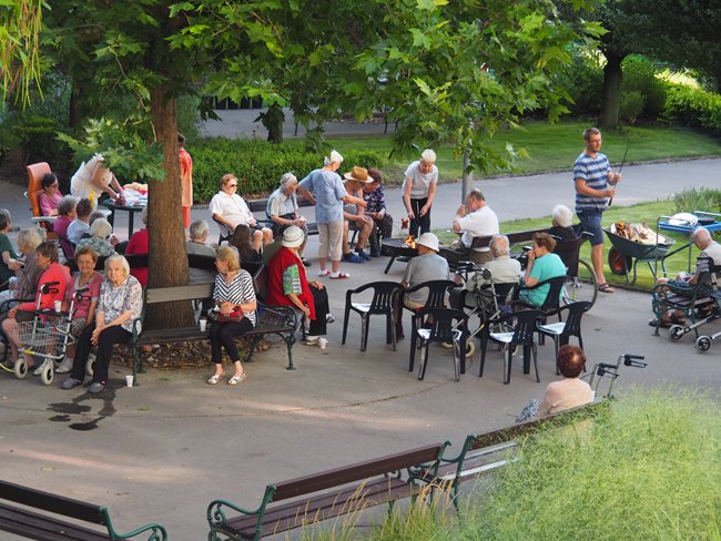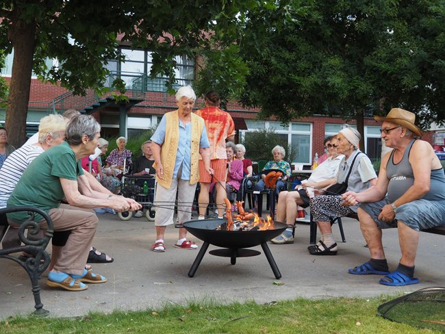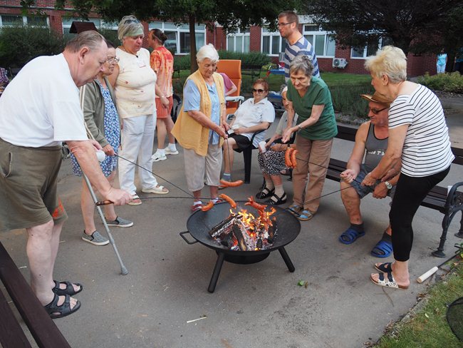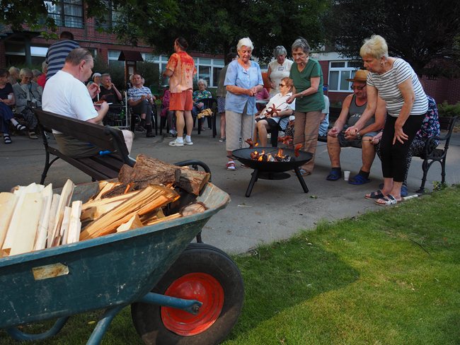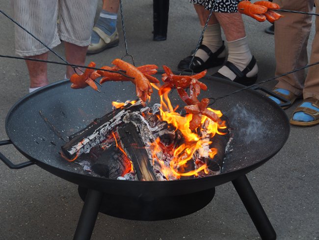 Chladnější dopoledne jsme využili k posezení u ohně s opékáním buřtů. Povídali jsme si o této letní aktivitě, kde a kdy vznikla, co vše se opéká a jaké písničky se zpívají. Některé trampské písně jsme si s chutí zazpívali. Rozvinula se zajímavá debata o tématu: "na kterých zajímavých místech kdo stanoval a jaké nevšední zážitky měl".