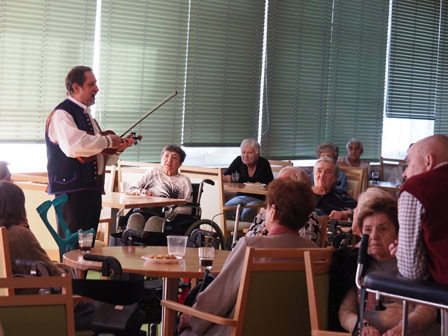 "Podzim pro seniory" je název maturitního projektu Michaely Woffové. Dnes jsem si vyslechli umělecký přednes pana Jaroslava Brendla...