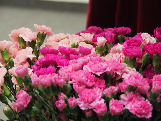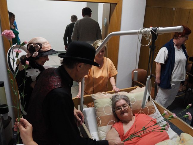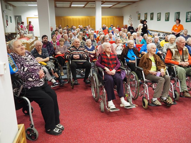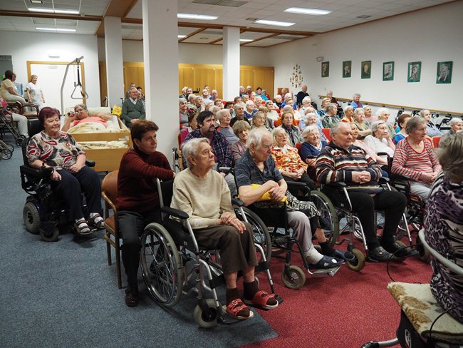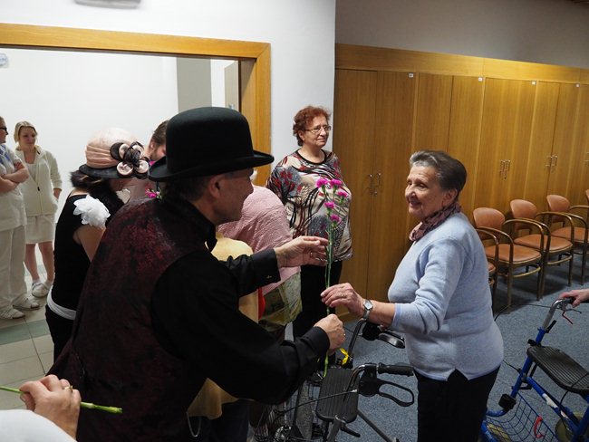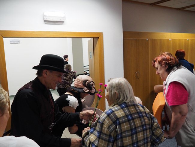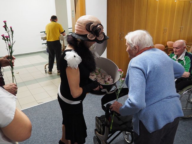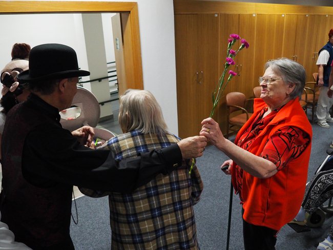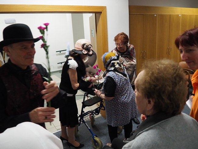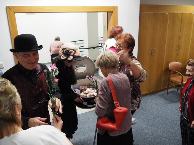 Ženy obdržely od pana Procházky květinu a od paní Procházkové látková, ručně šitá srdíčka.