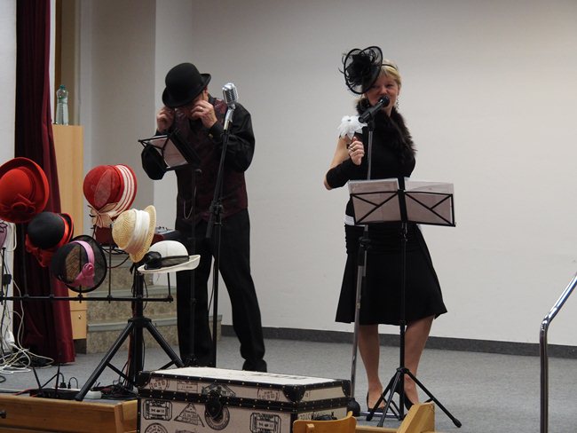 Společně s manžely Procházkovými jsme oslavili svátek žen. Zazpívali jsme si písně z 30. let (od skladatelů Ježka, Vacka, Vejvody atd.), prohlédli si kloboukovou módní přehlídku a dozvěděli se, které významné osobnosti se v těchto letech narodily.