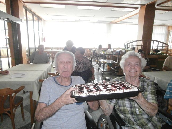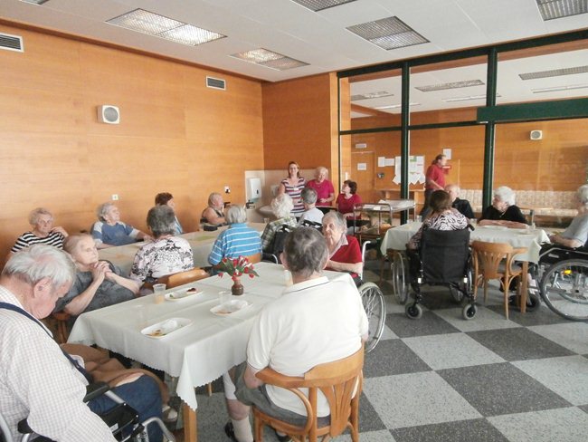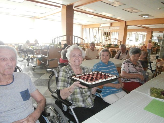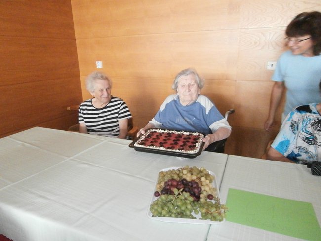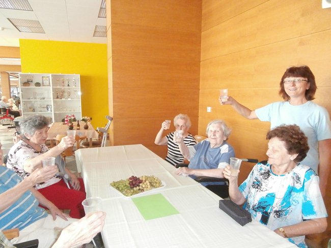Oslava narozenin klientů oddělení C1, kteří se narodili v měsíci září, se nesla v duchu vinobraní (dort, výzdoba, písně).