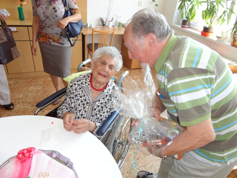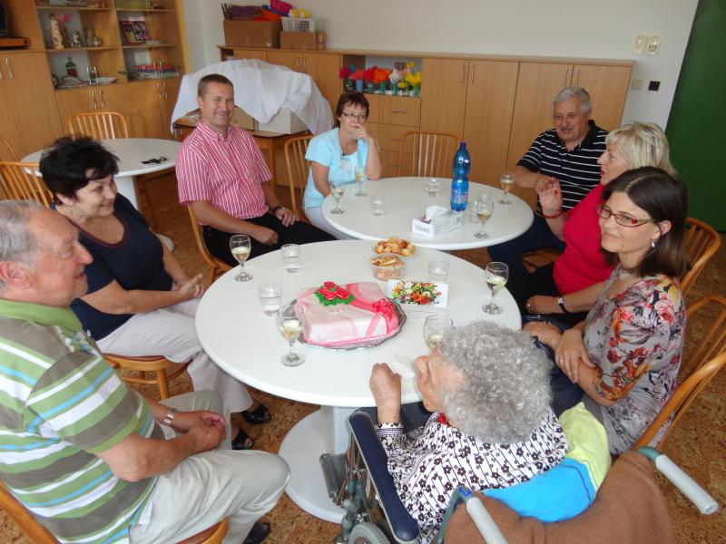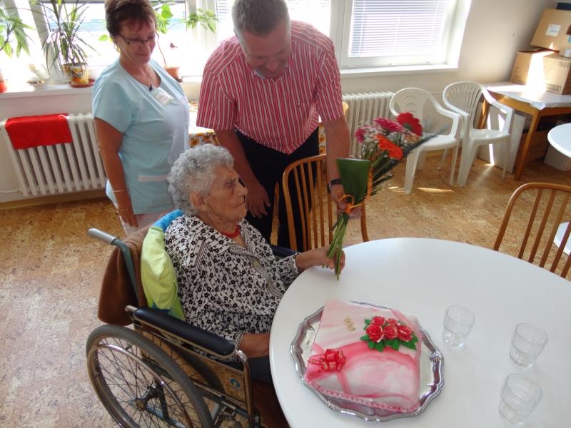 V její narozeninový den ji popřáli zástupci líšeňské radnice, pan ředitel Ing. Nytl, paní vrchní sestra Bc. Horková a ostatní zaměstnanci domova. Oslavu připravila rodina paní Gabrielové, která k nám do domova přišla z Líšně.