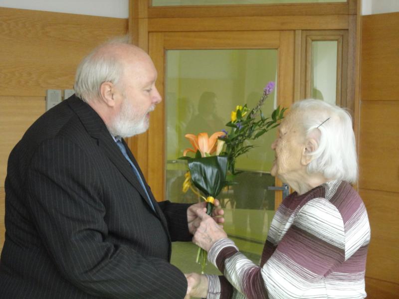 Dne 15. 3. 2013 oslavila paní Komprdová Anežka krásných 100 let. K tomuto významnému životnímu jubileu ji přišel popřát pan starosta z městské části Vinohrady, PhDr. Jiří Čejka a pan ředitel DS. Za všechny zaměstnance a klienty domova přejeme paní Komprdové mnoho zdraví a spokojenosti do dalších let.