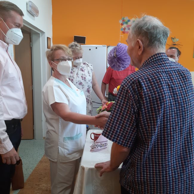 Dne 14. 7. 2014 oslavila paní Miklíková významné životní jubileum - sto let. K narozeninám jí přišel popřát pan ředitel Ing. R. Nytl, starosta ÚMČ...