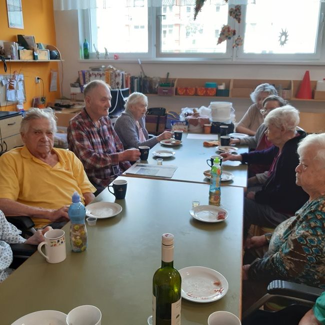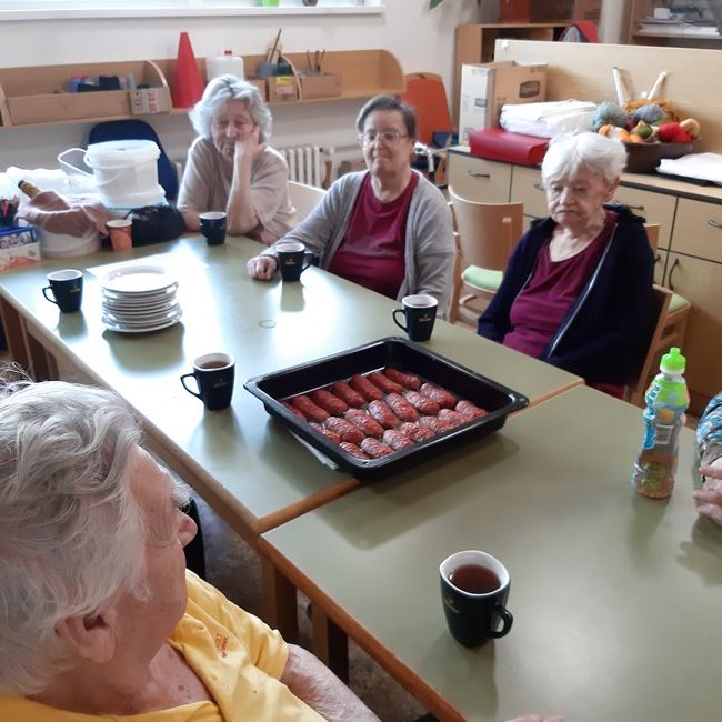 Společně jsme oslavili narozeniny klientek, 1. máj a opekli si špekáčky. Těšíme se, až nám bude přát počasí a budeme grilovat a slavit i v zahradě.