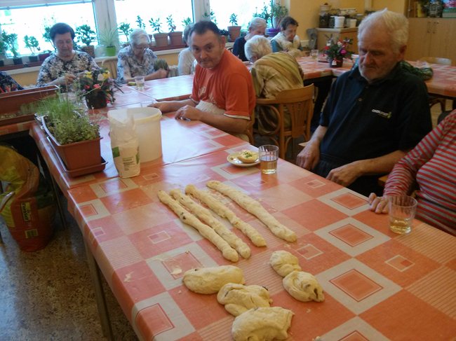 V aktivizační dílně jsme si upekli linecké a vanilkové rohlíčky, na kterých si pochutnáme na Štědrý den. Na pečení se podíleli i muži, kteří hlídali cukroví v troubě, aby mělo správnou barvu.