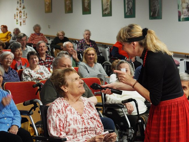 "Podzim pro seniory" je název maturitního projektu Michaely Woffové. Dnes jsem si vyslechli umělecký přednes pana Jaroslava Brendla...