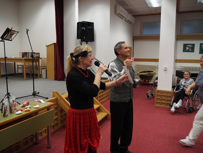 Manželé Procházkovi zazpívali známé písničky od každého písmene abecedy. Na závěr si připravili pro klienty tombolu se zajímavými dárky.